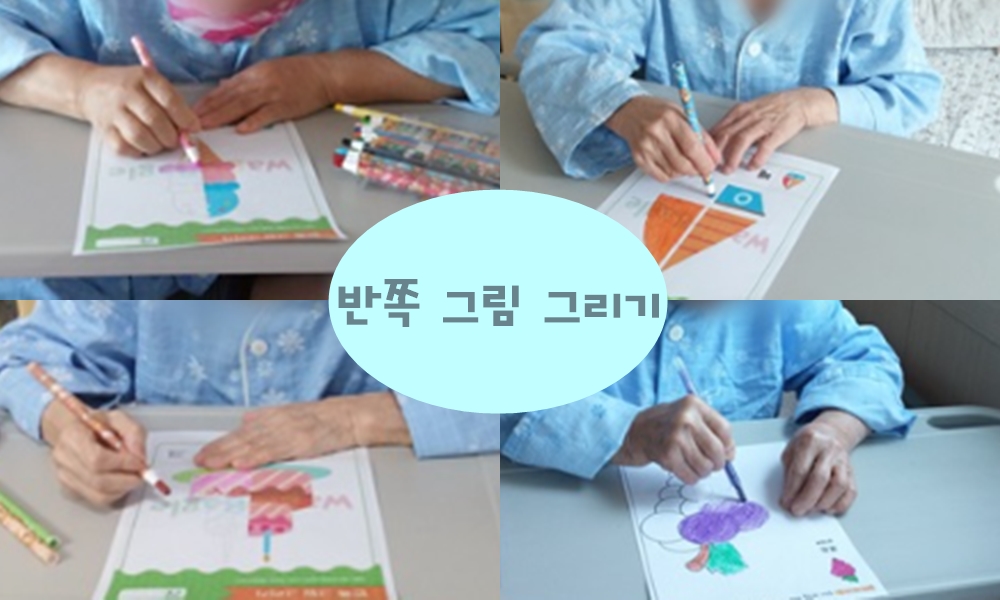 2025.11.13 미술치료 - 반쪽 그림 그리기 본문 2025년 11월 13일 목요일에는 반쪽 그림 그리기를 하였습니다.반쪽을 마저 그리고 싶은 그림을 고를 수 있게 한 후 그림을 그리고 색칠을 하셨고, 어르신들께서 반쪽그림 그리기를 너무 예쁘게 완성하셨습니다~~^^ 목록 다음글